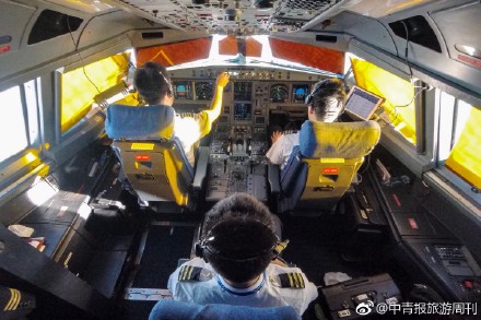 10月3日,国航CA4303航班由成都飞往广州。机组人员正驾驶客机巡航在11300米的高空。@艾尔巴士王师傅/摄