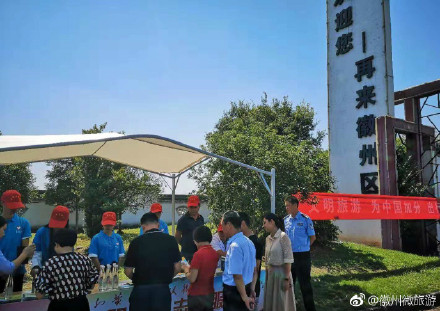 为全力做好“十一”黄金周旅游服务工作,徽州旅游志愿者在景区景点,高速出口提供即时服务,为游客提供信息咨询 、免费矿泉水等服务。程薛华/摄